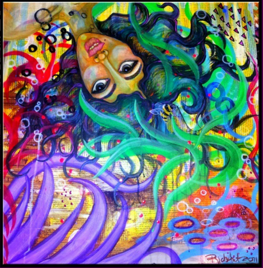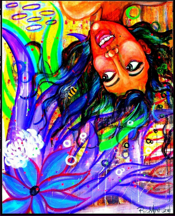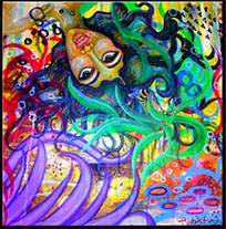 Take Me On A Magic Carpet Ride 24x24 acrylic on collage canvas